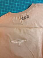 Barva výšivky je zlatá a je buď na prsu a nebo na středu trička.